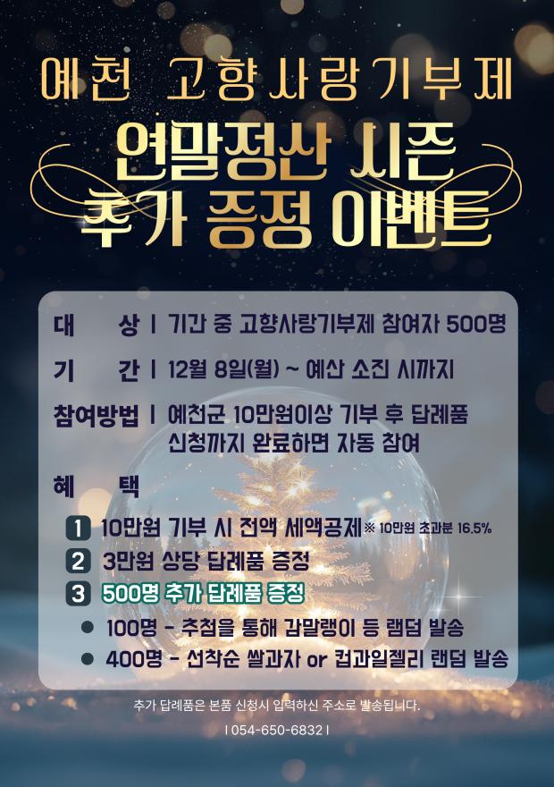 예천군(군수 김학동)은 7일 지방세 과오납금 1,639건(총 3,400만원)에 대한 ‘지방세 환급금 안내문’을 일괄 발송했다고 밝혔다.