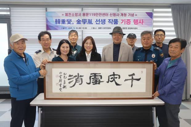 예천소방서(서장 안영호) 용문119안전센터는 오는 9월 25일 개청을 앞두고 지난 23일 오전 10시, 지역 원로 서예가들의 작품 기증식을 가졌다.