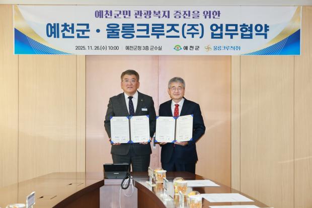 예천군(군수 김학동)은 26일, 울릉크루즈(주)(대표이사 조현덕)와 상호 관광교류 및 군민 관광복지 증진을 위한 업무협약을 체결했다.